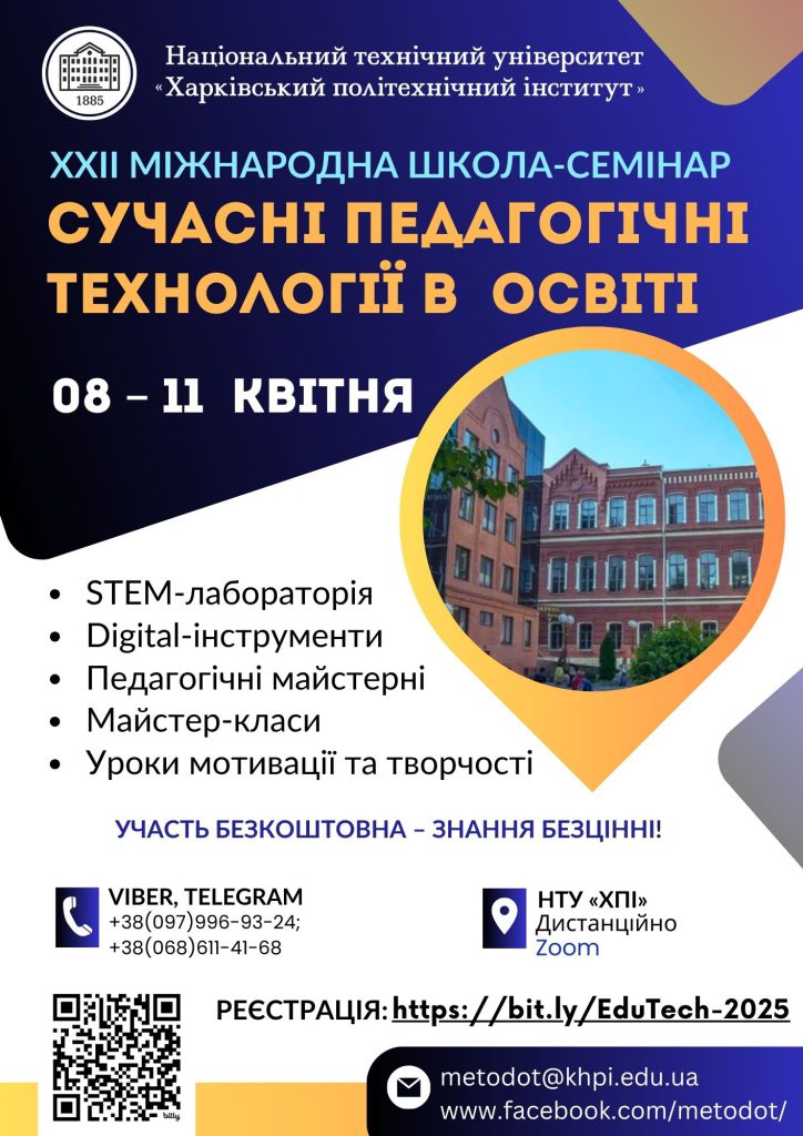 Запрошуємо до участі у ХXIІ Міжнародній школі-семінарі «Сучасні педагогічні технології в освіті»!