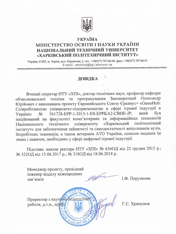 Проект Європейського Союзу Єразмус+ «GameHub: Співробітництво університет-підприємництво в сфері ігрової індустрії в Україні» № 561728-EPP-1-2015-1-ES-EPPKA2-CBHE-JP
